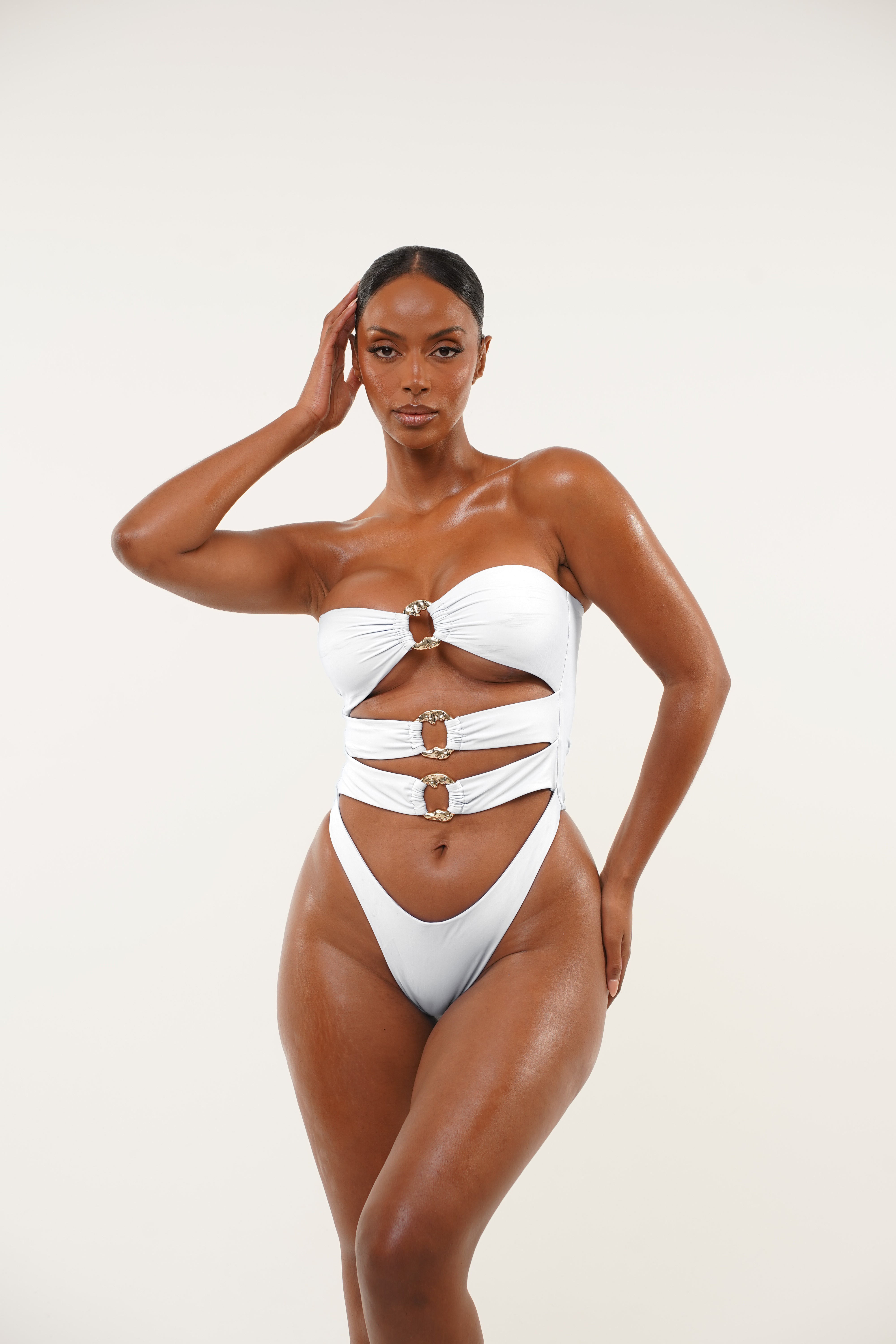 Our Gold Piece Swimsuit is crafted from sustainable Vita fabric, offering a super stretchy fit that beautifully accentuates your figure with its well-cut shape and supportive structure. Perfect for achieving that "it girl" beach club look, especially when paired with our lace maxi!