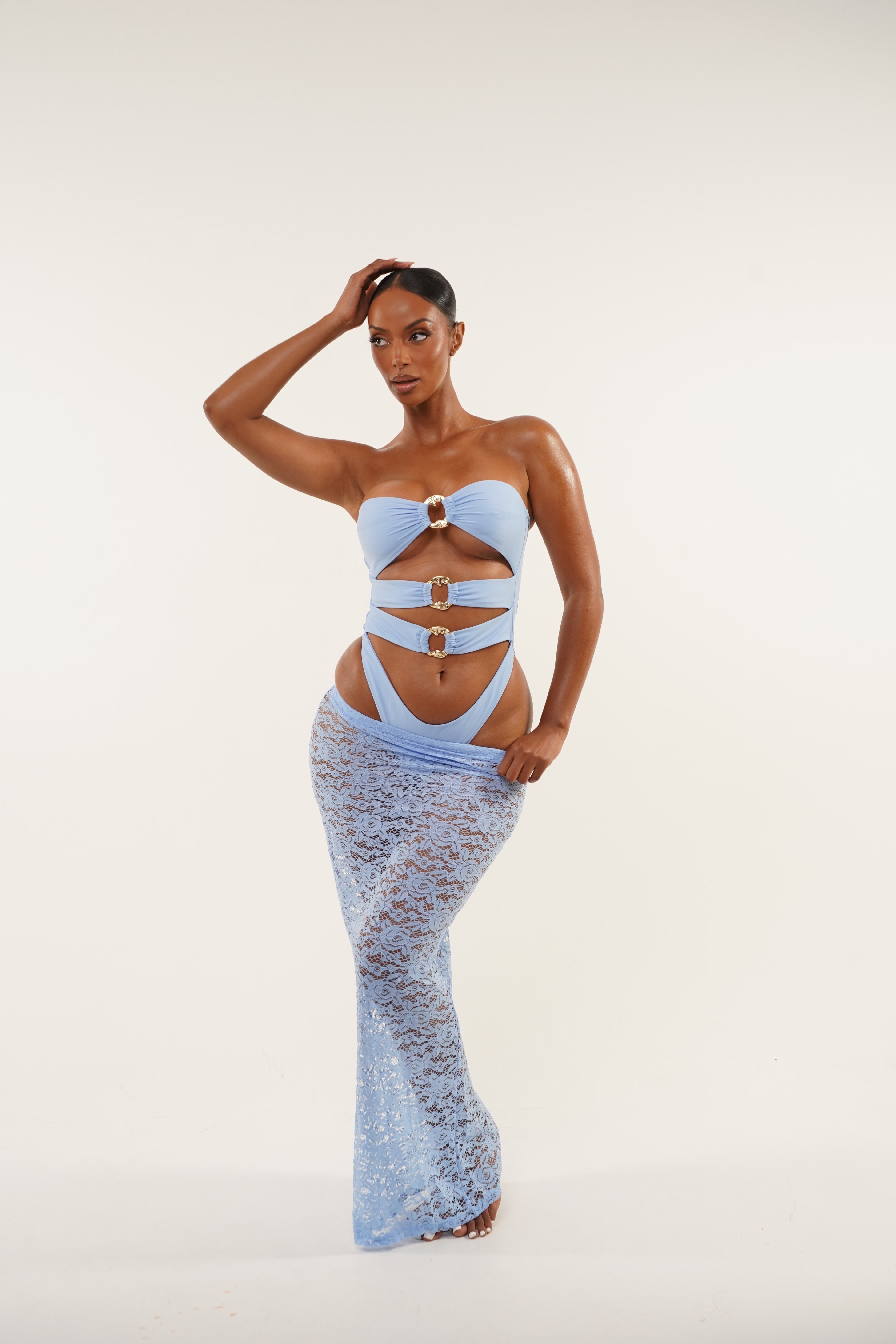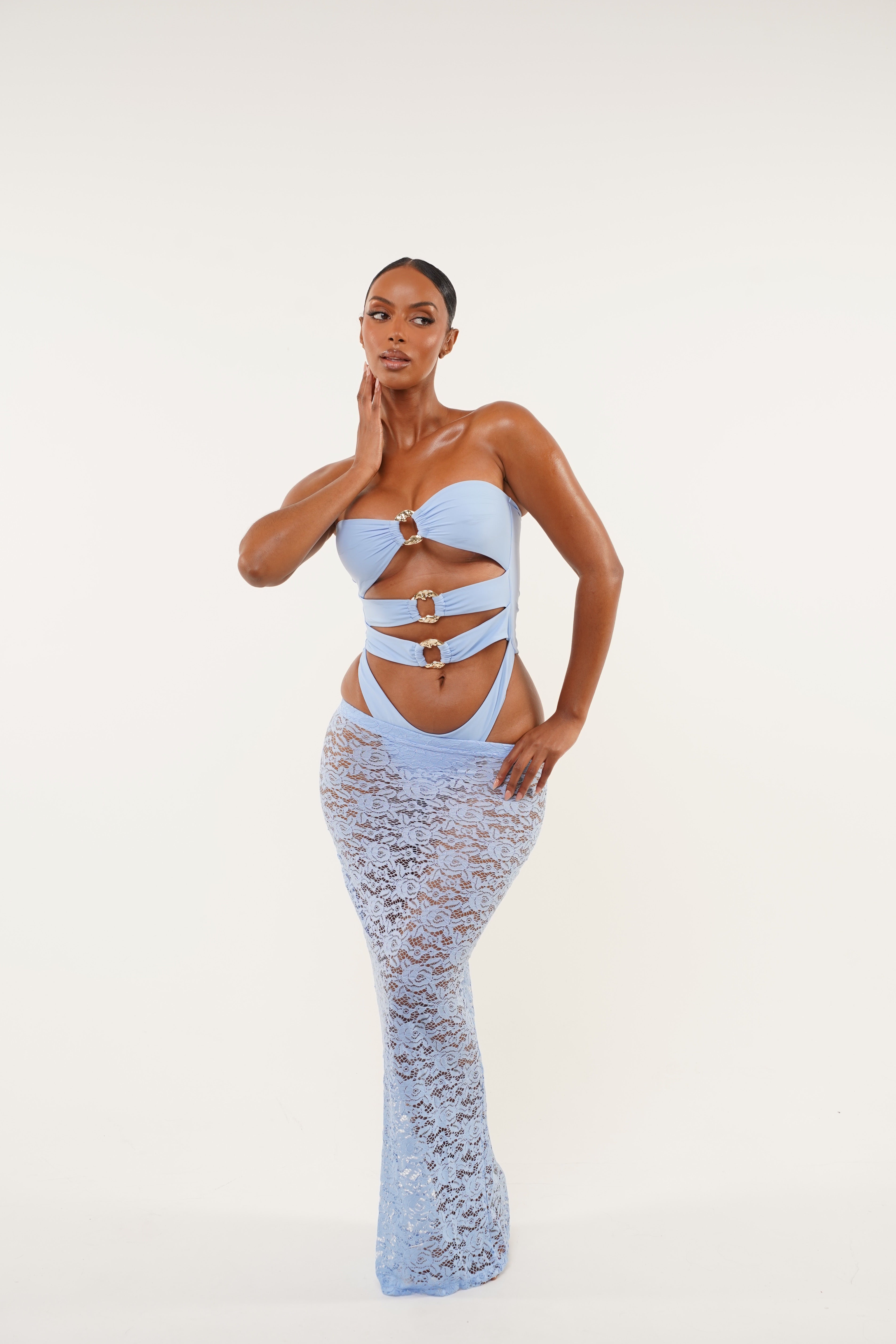 Our lace maxi skirt is the ultimate vacay fit, Featuring a single layered lace with a elasticated waist band, This maxi skirt is a stretchy slip on piece you need.