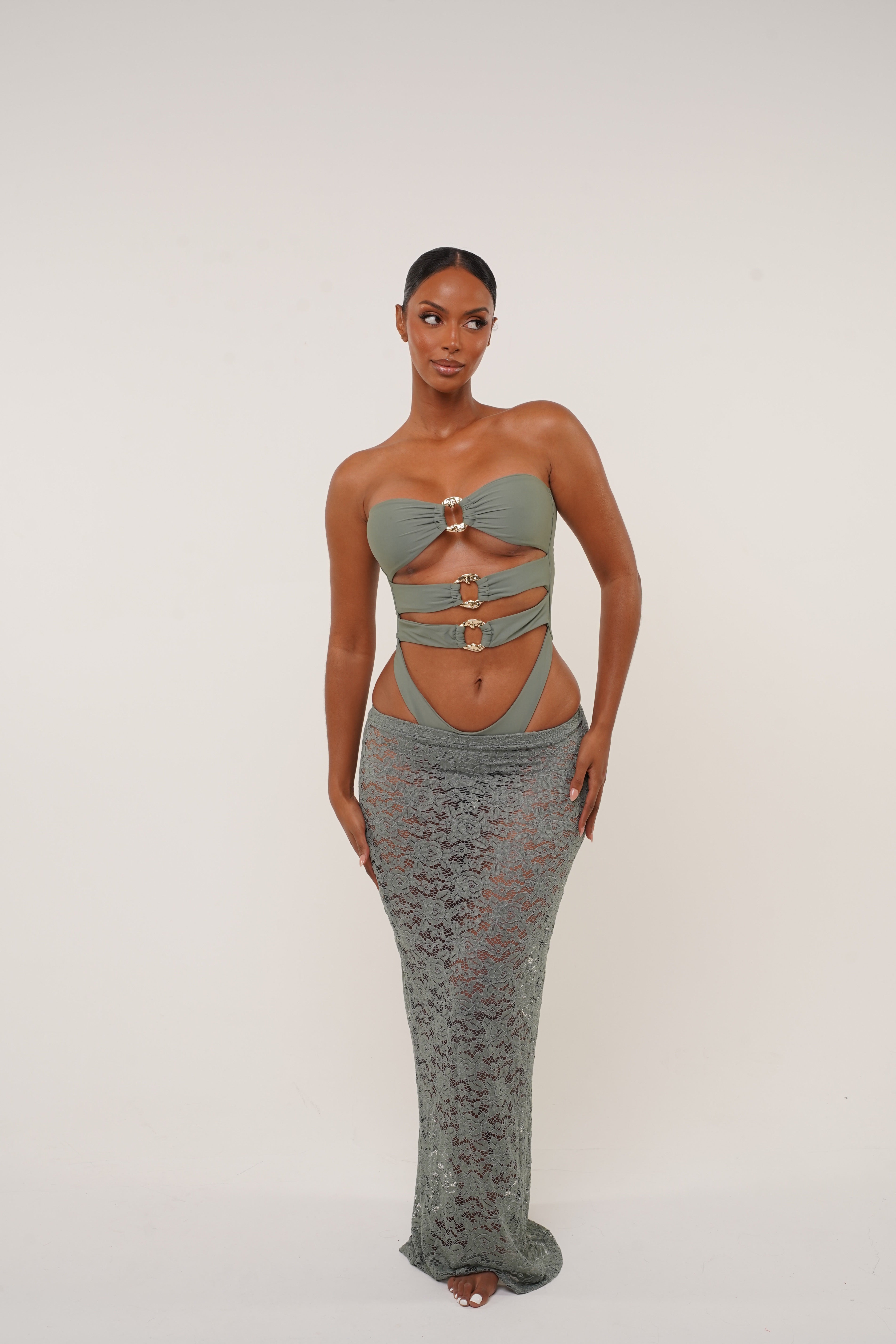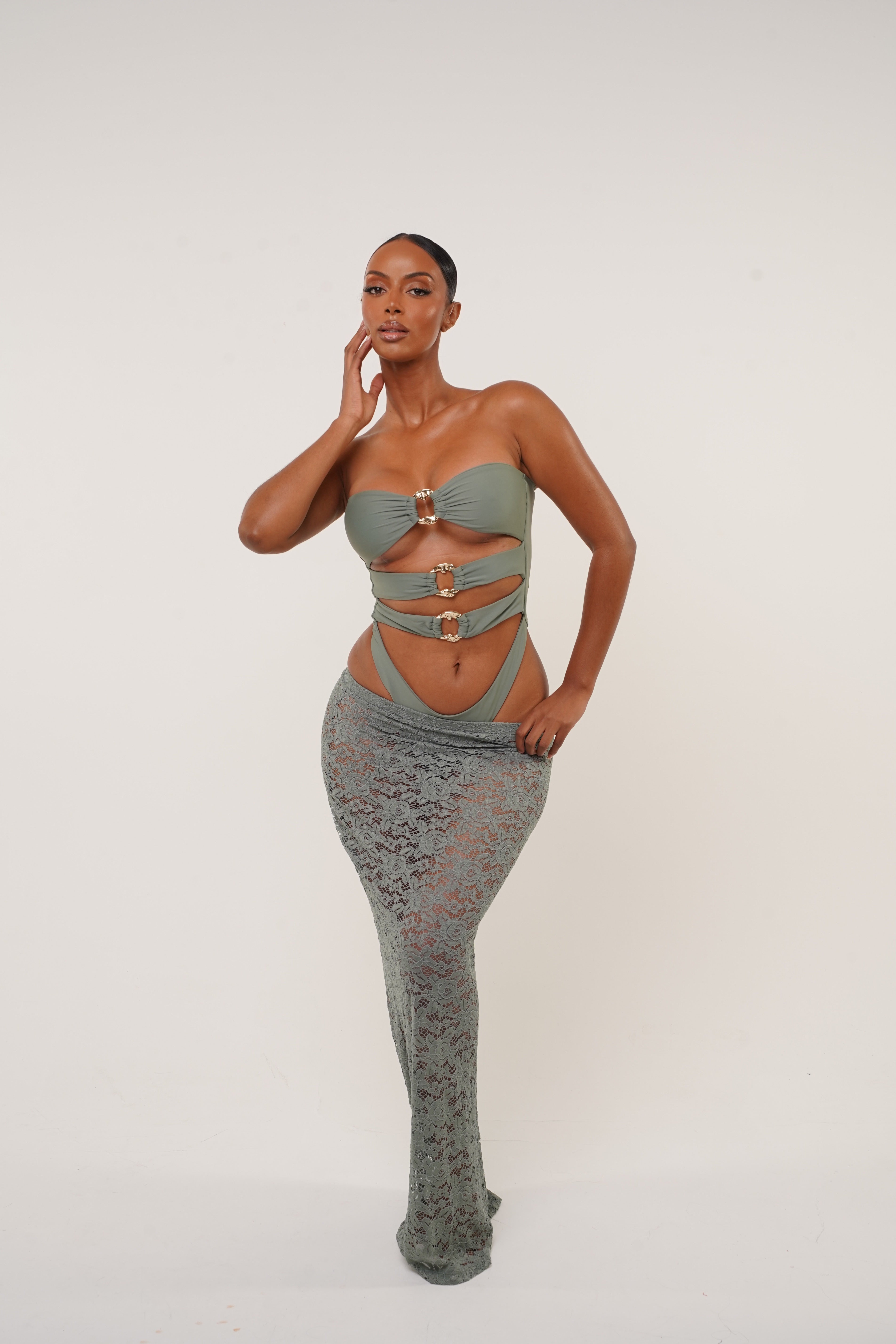 Our lace maxi skirt is the ultimate vacay fit, Featuring a single layered lace with a elasticated waist band, This maxi skirt is a stretchy slip on piece you need.