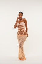 Our lace maxi skirt is the ultimate vacay fit, Featuring a single layered lace with a elasticated waist band, This maxi skirt is a stretchy slip on piece you need.